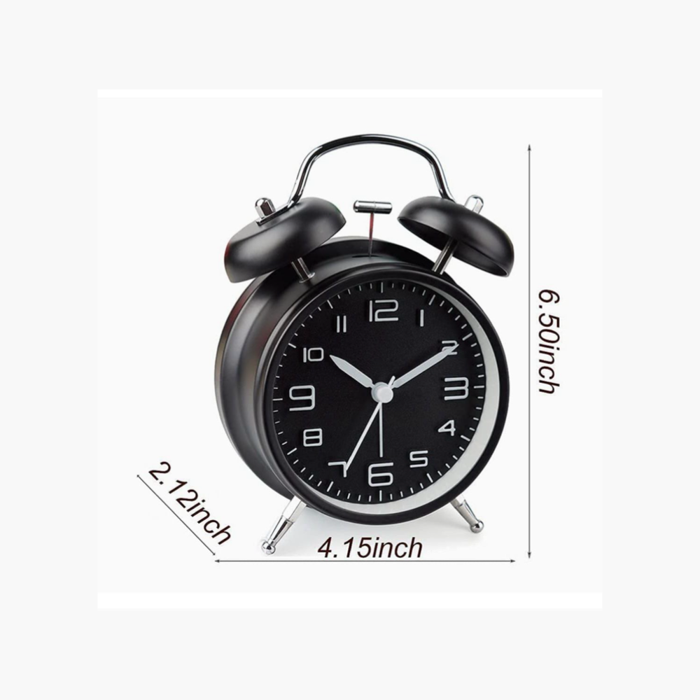 • صامتة وغير مزعجة: استمتع ببيئة هادئة مع ساعة منبه جرس ذات حركة كوارتز الصامتة. ساعة منبه تعمل بالبطارية وتضمن نومًا هادئًا دون أصوات دقات مزعجة.